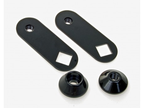 This 6-piece kit EMD Tank Lifts comes with brackets wich are precise fit to the frame and form fit to the gas tank. The square mounting holes fit secure to the square mounting bosses on the frame. The lower srew was covered by nice loooking threaded washers. Easy install with one person and without any hassle !